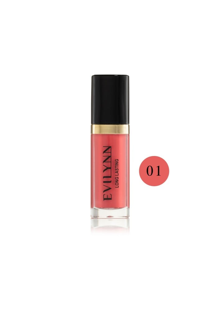 • يدوم طويلاً: يدوم أحمر الشفاه السائل من ايفلين طوال اليوم دون أن يتلطخ أو يتقشر.
